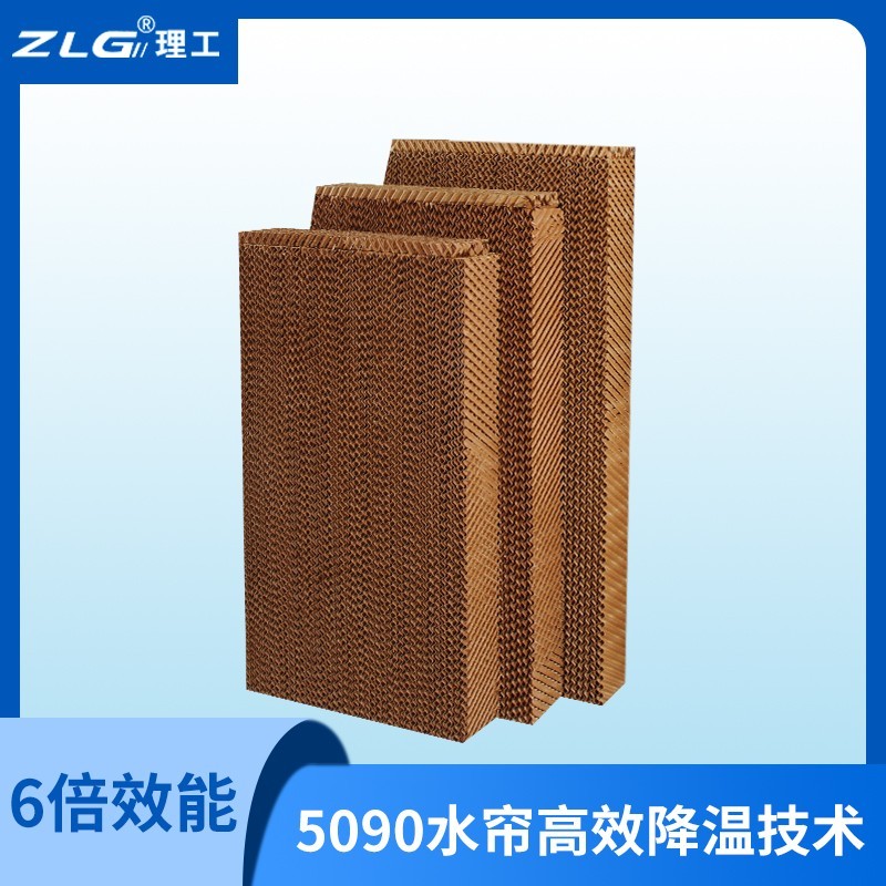 ZLG理工水簾(濕簾)是一種特種紙制蜂窩結構材料,其工作原理是“水蒸發吸收熱量”這一自然物理現象,即水在重力的作用下,從上往下流, 在水簾(濕簾)波紋狀的纖維表面形成水膜,當流動的空氣經過水簾(濕簾)時,水膜中的水會蒸發吸收空氣中的熱量,帶走大量的潛熱,使經過水簾(濕簾)的空氣溫度降低,從而達到降溫的目的。