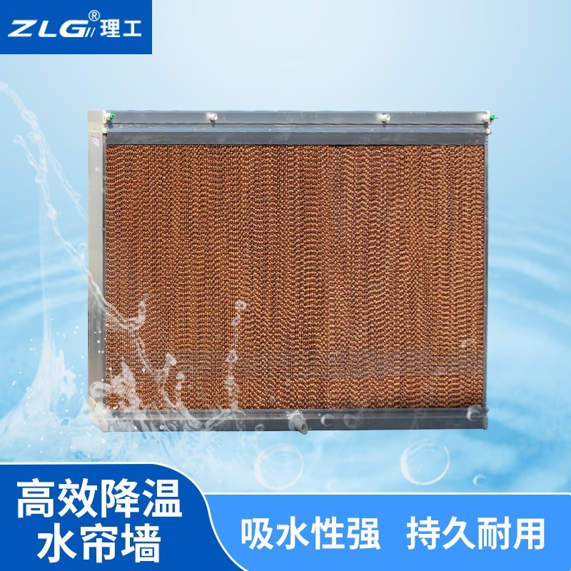 ZLG理工水簾(濕簾)是一種特種紙制蜂窩結構材料,其工作原理是“水蒸發吸收熱量”這一自然物理現象,即水在重力的作用下,從上往下流, 在水簾(濕簾)波紋狀的纖維表面形成水膜,當流動的空氣經過水簾(濕簾)時,水膜中的水會蒸發吸收空氣中的熱量,帶走大量的潛熱,使經過水簾(濕簾)的空氣溫度降低,從而達到降溫的目的。